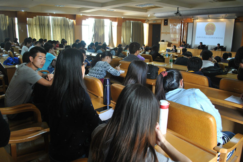 法律系刘敏老师、 2012 级同学等百余名师生到场旁听。 庭审开始之际,书记员用庄严、肃穆的声音宣读法庭纪律,真实的还原了庭审现场。专属于法律的魅力深深的吸引住了在场的每一位同学,让他们都能真切的感受到法庭的庄严。法锤落下,由审判长宣布开庭,整个庭审期间,庭审都严格按照法律程序进行。 庭审结束后,刘敏老师表示,通过参加公开庭审,让同学能以最真实的方式去接触法律,减少了只是单纯书本教学带来的不足,可以更加好的提起同学学习法律的热情,案件内容虽然简单,但是却严格依照民事庭审程序进行,有利于同学更好的理解庭审程序。 12 级法学专业的同学张文说道:“这次的旁听很有意义,让同学们增长了不少法学实践知识,同时我也感觉自己的法律学习之路任重道远,需要不断努力。” (责任编辑:admin) |