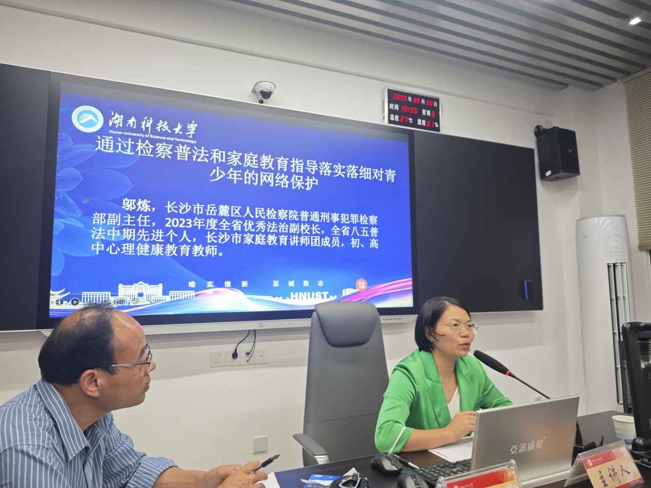 邬炼检察官则从检察普法与家庭教育指导的角度,介绍了岳麓区检察院在法治宣传、家庭教育联动和校园读书会等多方面的实践举措,强调检察机关正逐步从办案向预防延伸,推动构建家庭、巨乳