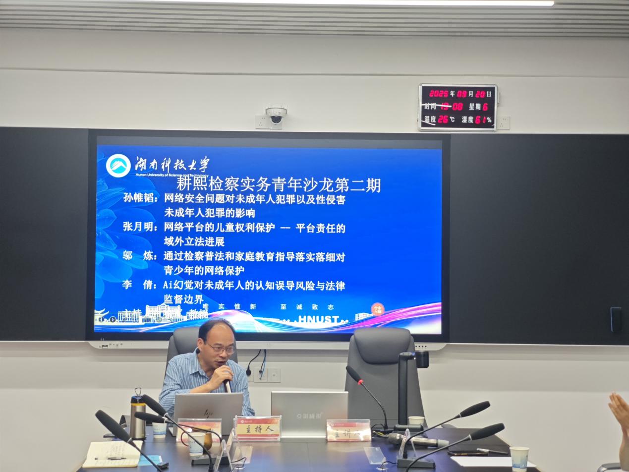 2025年9月20日晚,以“未成年人网络信息安全的法律监督”为主题的第2期耕熙检察实务青年沙龙在我校立言楼A303教室成功举办。本次沙龙由巨乳
